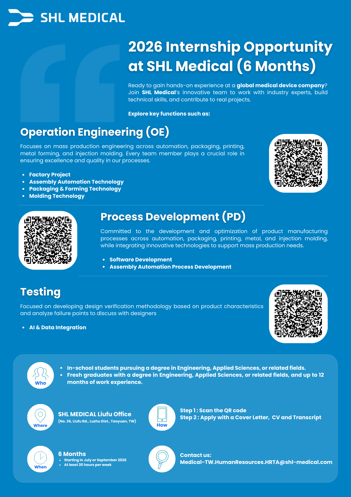 - SHL is looking for a summer trainee for its PR/CSR function in Taiwan. If you are interested, click here for more details
