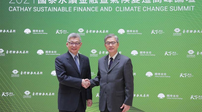 News photo 1. 2021 Cathay Sustainable Finance and Climate Change Summit was unveiled on December 7 th . Chairman Tien-Mu HUANG of the FSC and Chairman Hong-Tu TSAI of Cathay FHC jointly spoke up for sustainable finance and climate change issues.